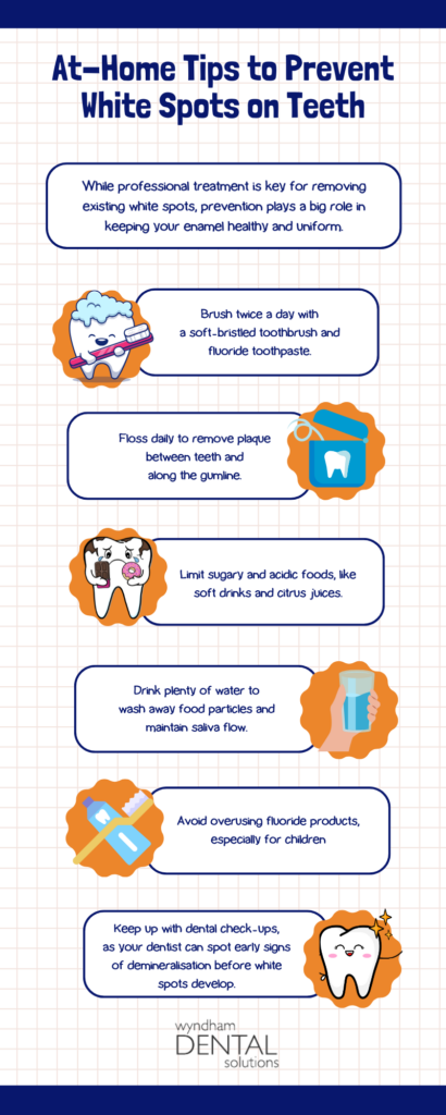 If you’re ready to bring back your confident, balanced smile, book a consultation with Wyndham Dental today. We’ll help you find the best treatment to get rid of white spots effectively and keep your smile looking bright and healthy for years to come.